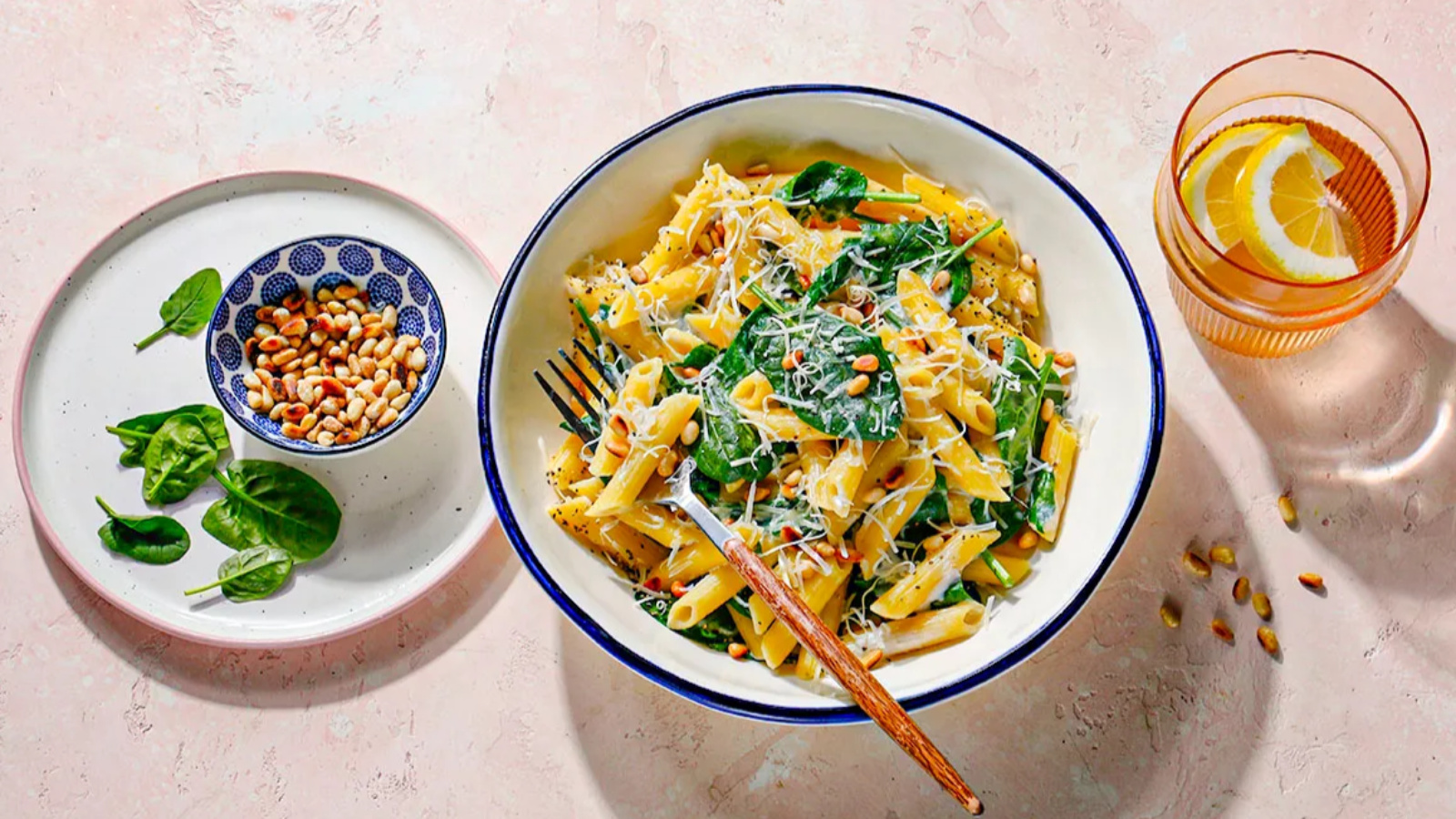Сливочный соус для макарон со шпинатом и кедровыми орехами