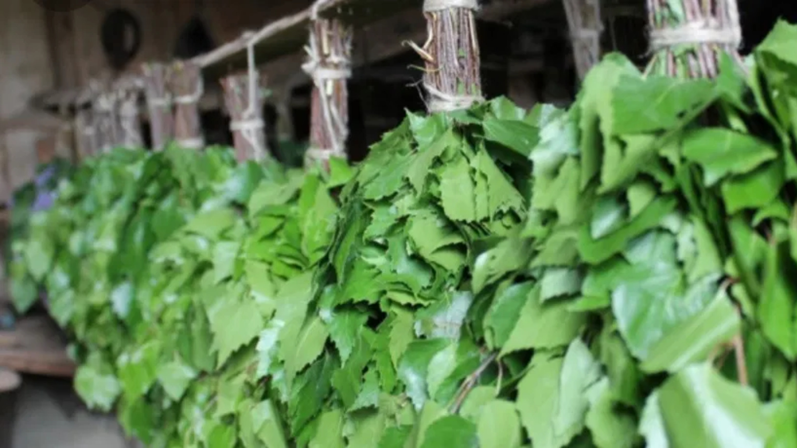 Сушка Длится около недели в хорошо проветриваемом, прохладном и сухом месте, подальше от прямых солнечных лучей. Обычно для сушки веники подвешивают, однако можно высушить их, и разложив на полу.