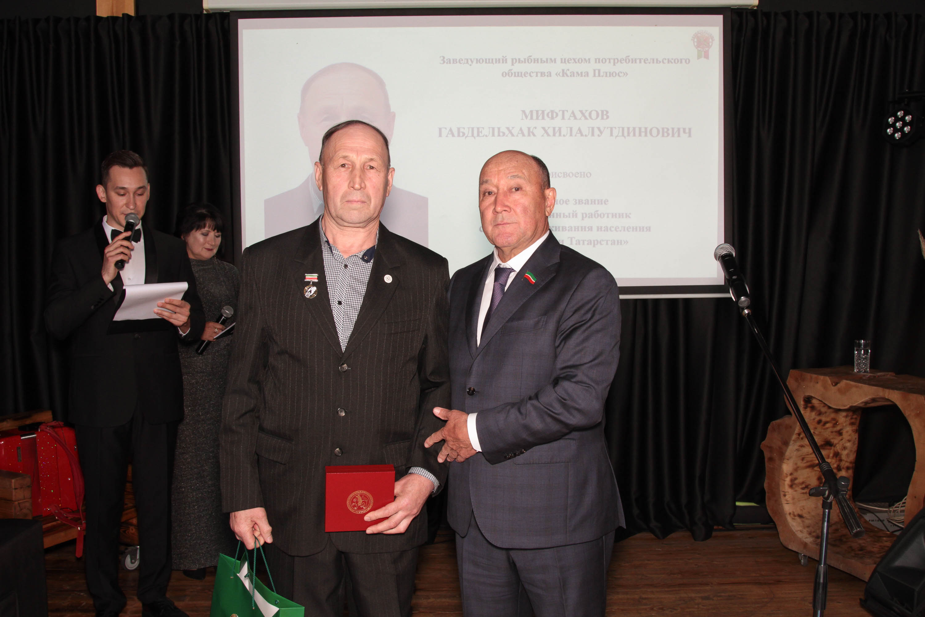 Заведующему рыбным цехом потребительского общества «Кама Плюс» МИФТАХОВУ ГАБДЕЛЬХАК ХИЛАЛУТДИНОВИЧУ присвоено почетное звание «Заслуженный работник сферы обслуживания населения Республики Татарстан»