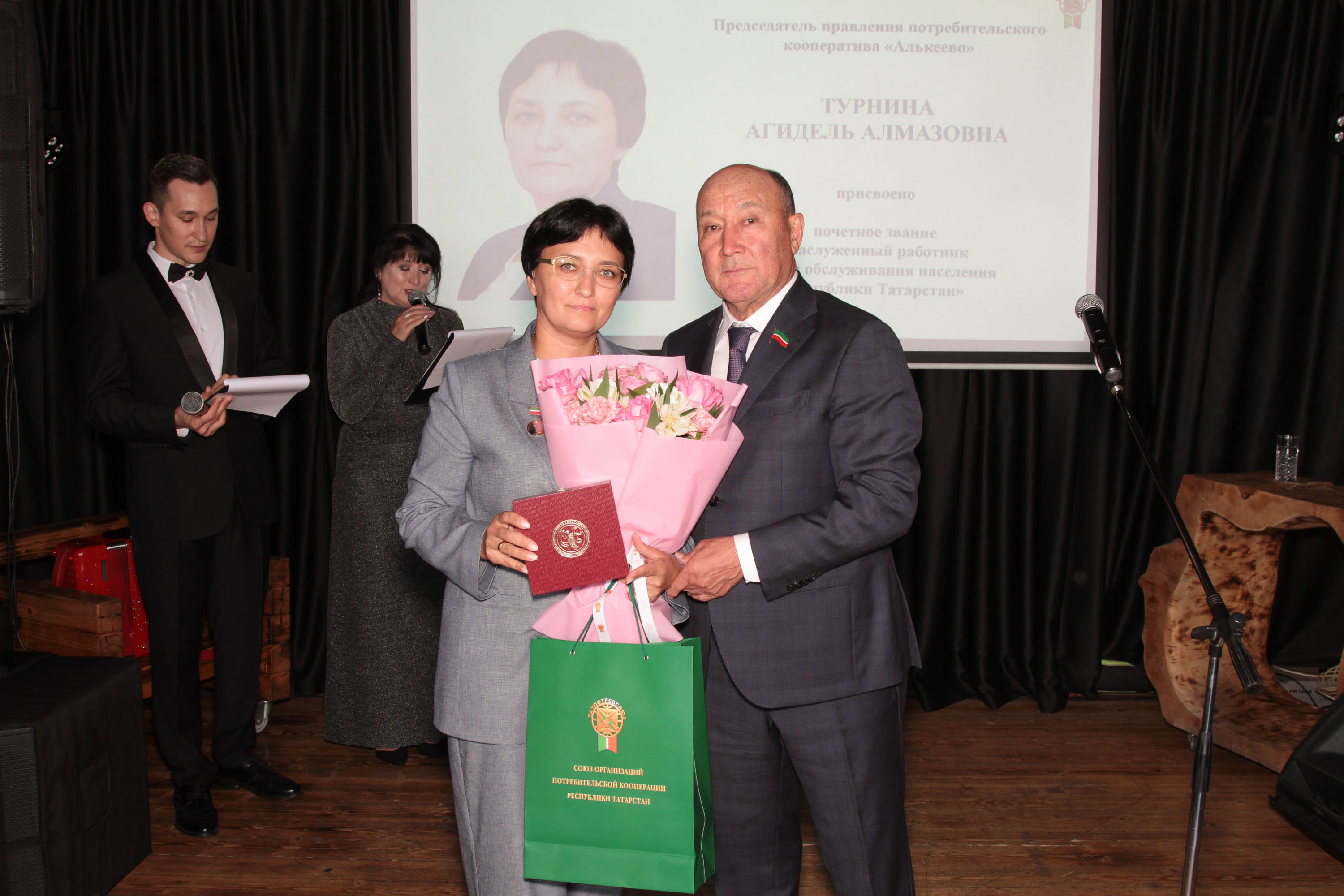 Председателю правления потребительского кооператива «Алькеево» ТУРНИНОЙ АГИДЕЛЬ АЛМАЗОВНЕ присвоено почетное звание «Заслуженный работник сферы обслуживания населения Республики Татарстан»