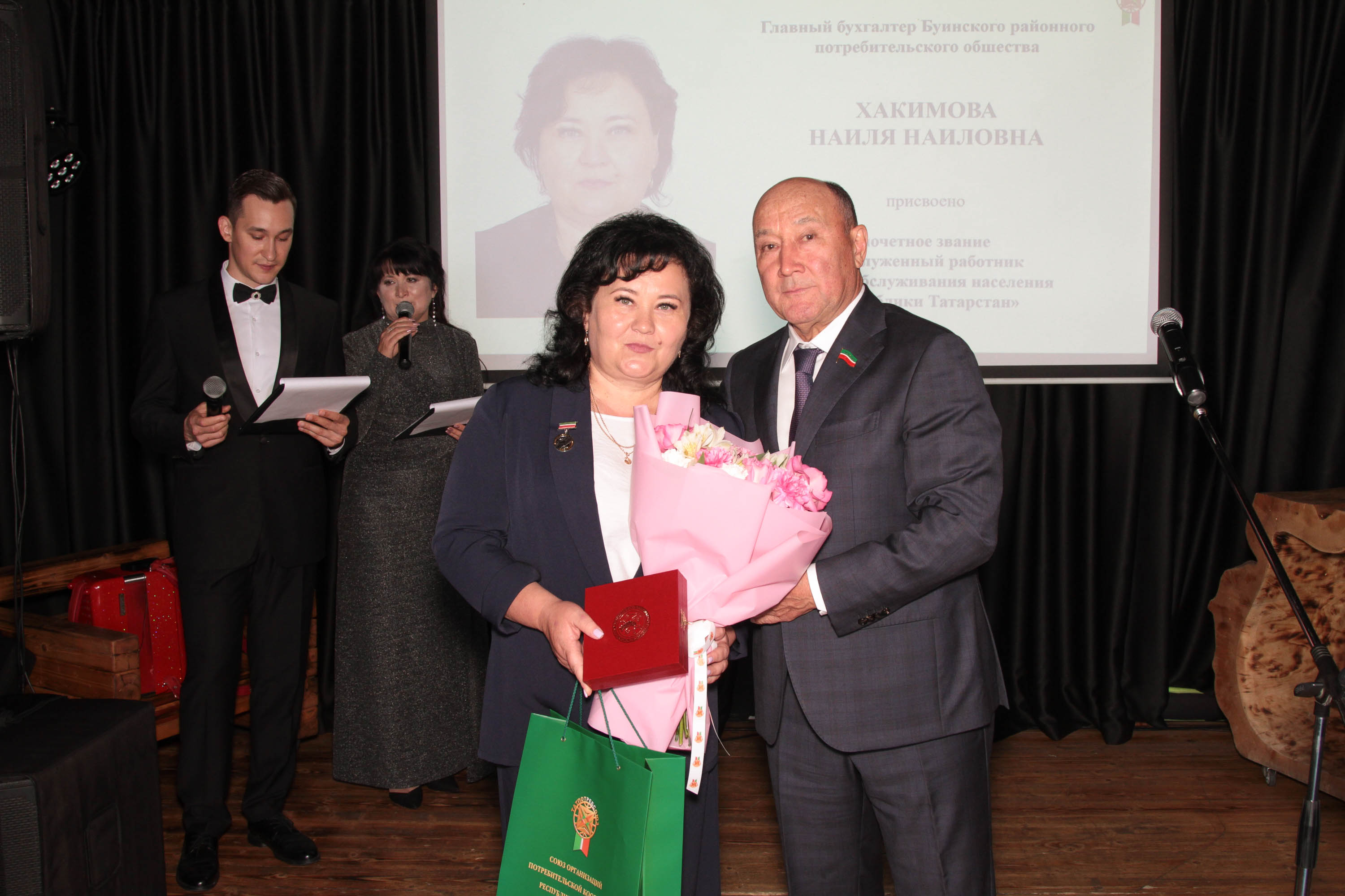 Главному бухгалтеру Буинского районного потребительского общества ХАКИМОВОЙ НАИЛЕ НАИЛОВНЕ присвоено почетное звание «Заслуженный работник сферы обслуживания населения Республики Татарстан»