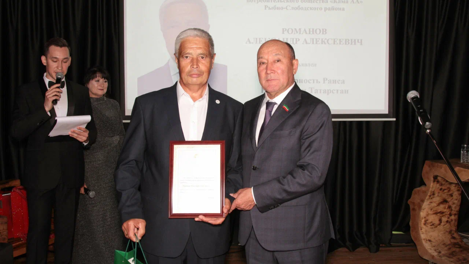РАСПОРЯЖЕНИЕМ РАИСА РЕСПУБЛИКИ ТАТАРСТАН за заслуги в профессиональной деятельности и вклад в развитие системы потребительской кооперации в республике награжден Благодарностью Раиса Республики Татарстан Романов Александр Алексеевич