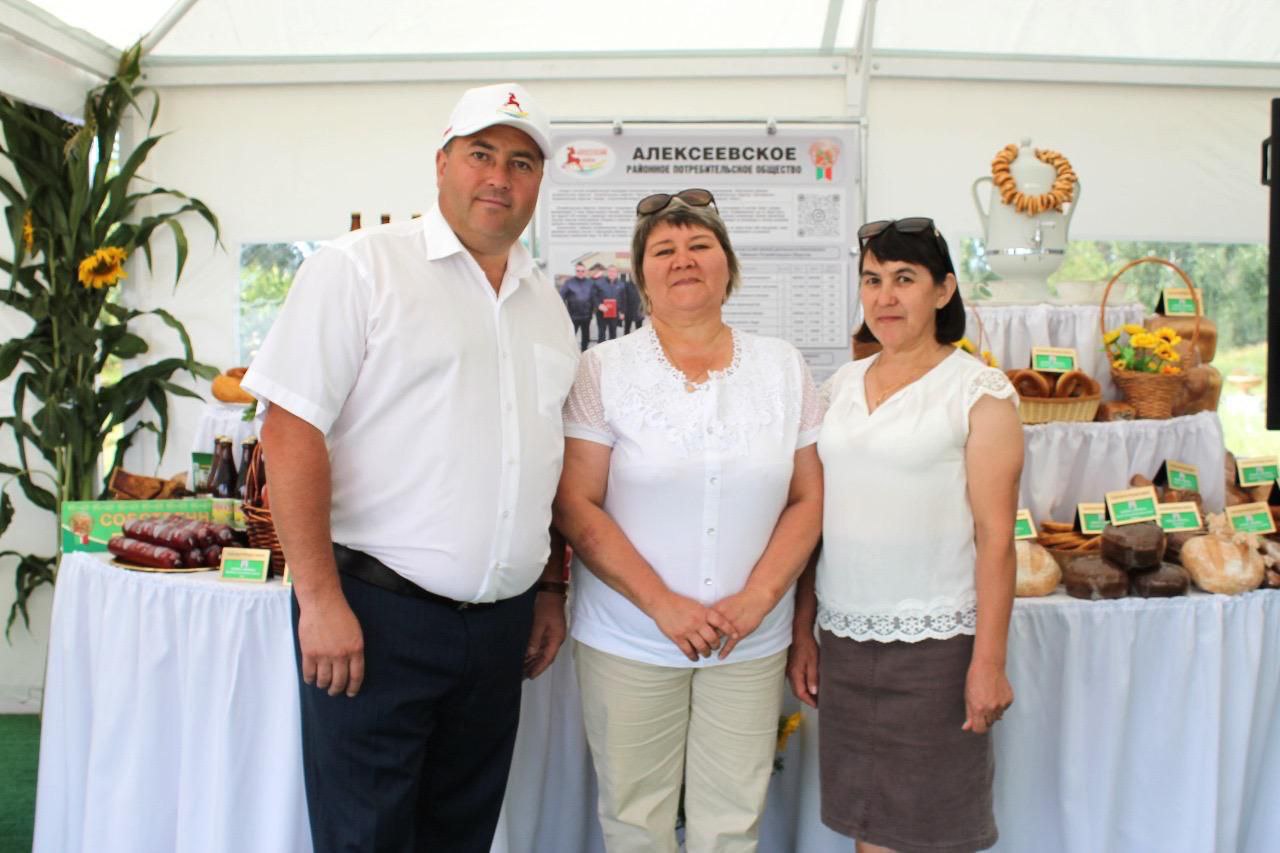Ильнур Хайбуллин, председатель правления Алексеевского райпо, представил широкий ассортимент продукции, который включал в себя колбасные изделия, освежающие безалкогольные напитки и разнообразные хлебобулочные продукты. За первые шесть месяцев года райпо смогло достичь значительного успеха, произведя товаров на сумму более 11 миллионов рублей.