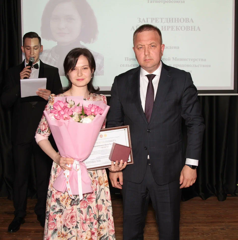 ПРИКАЗОМ МИНИСТЕРСТВА СЕЛЬСКОГО ХОЗЯЙСТВА И ПРОДОВОЛЬСТВИЯ РЕСПУБЛИКИ ТАТАРСТАН за добросовестный плодотворный труд и личный вклад в развитие системы потребительской кооперации Республики Татарстан Почетной Грамотой награждены: