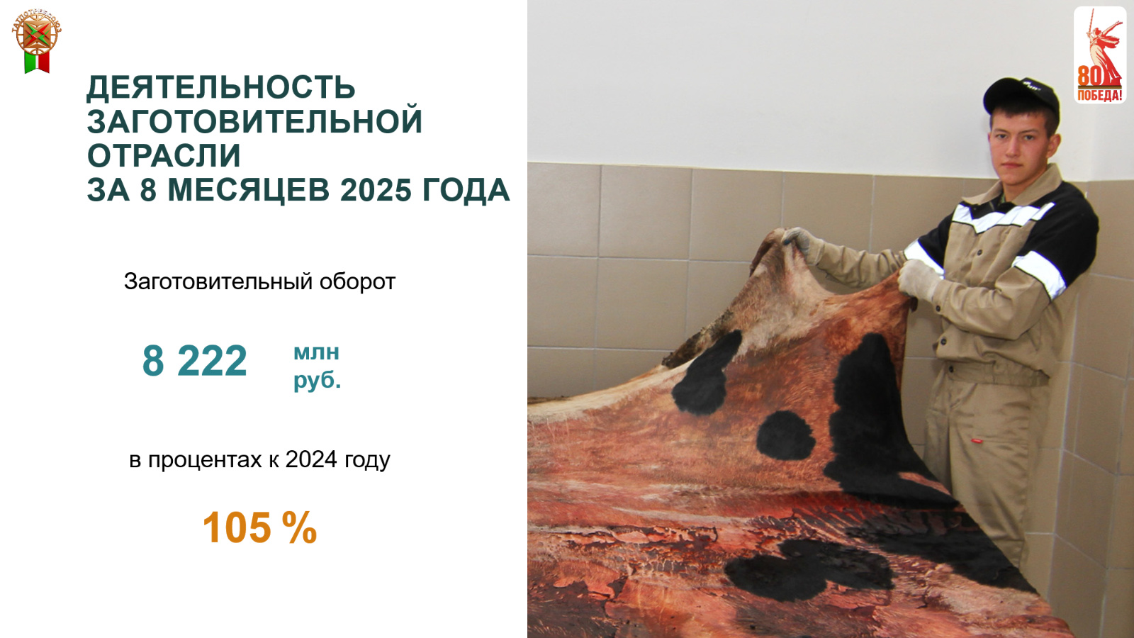 Заготооборот за два месяца текущего года составил около 8,2 млрд рублей с ростом 5 % к уровню прошлого года. По всем видам заготовок обеспечен соответствующий рост.