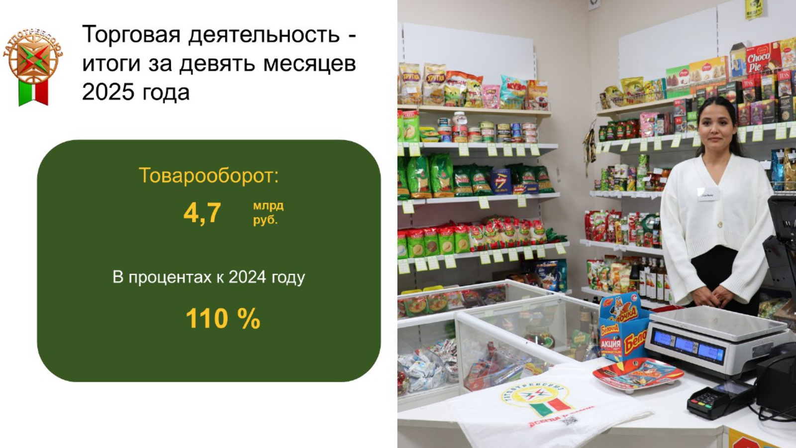 Объём среднемесячного товарооборота по системе Татпотребсоюза на 1 магазин составил 696 тысяч рублей.