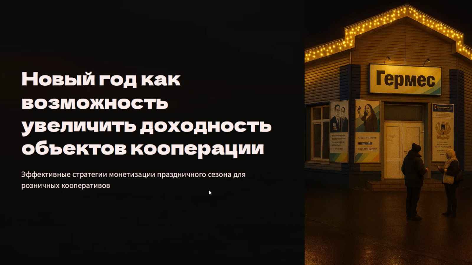 Евгений Бурденюк предложил практические рекомендации о том, как использовать предновогодний период для увеличения доходности объектов кооперации. Он подробно остановился на оптимизации товарного ассортимента с упором на сезонные позиции, а также на кросс‑продаже услуг общественного питания и розничной торговли.