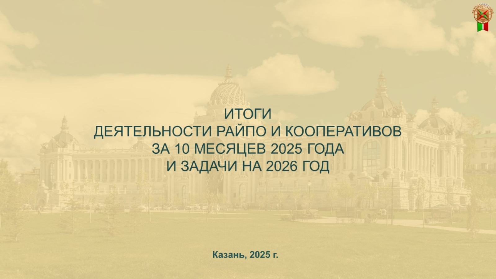 В Министерстве сельского хозяйства и продовольствия Республики Татарстан состоялось рабочее совещание, посвященное подведению итогов деятельности районных потребительских обществ (райпо) и кооперативов за десять месяцев 2025 года, а также определению задач на предстоящий 2026 год.