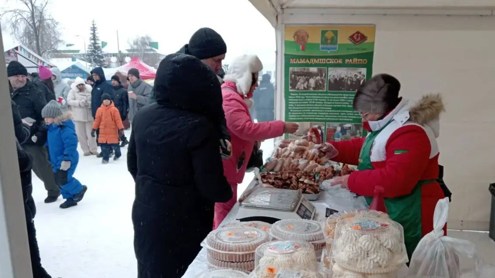 Площадка фестиваля превратилась в настоящий праздник, наполненный ароматами горячего чая, шашлыков и других вкусностей. Особое внимание гостей привлекли угощения от Мамадышского райпо. Угостили народ всем, чем богаты, чем славятся мамадышские кооператоры: это чак-чак, хворост, эчпочмаки и другая выпечка, колбасы,знаменитый мамадышский лимонад, разные мясные закуски.