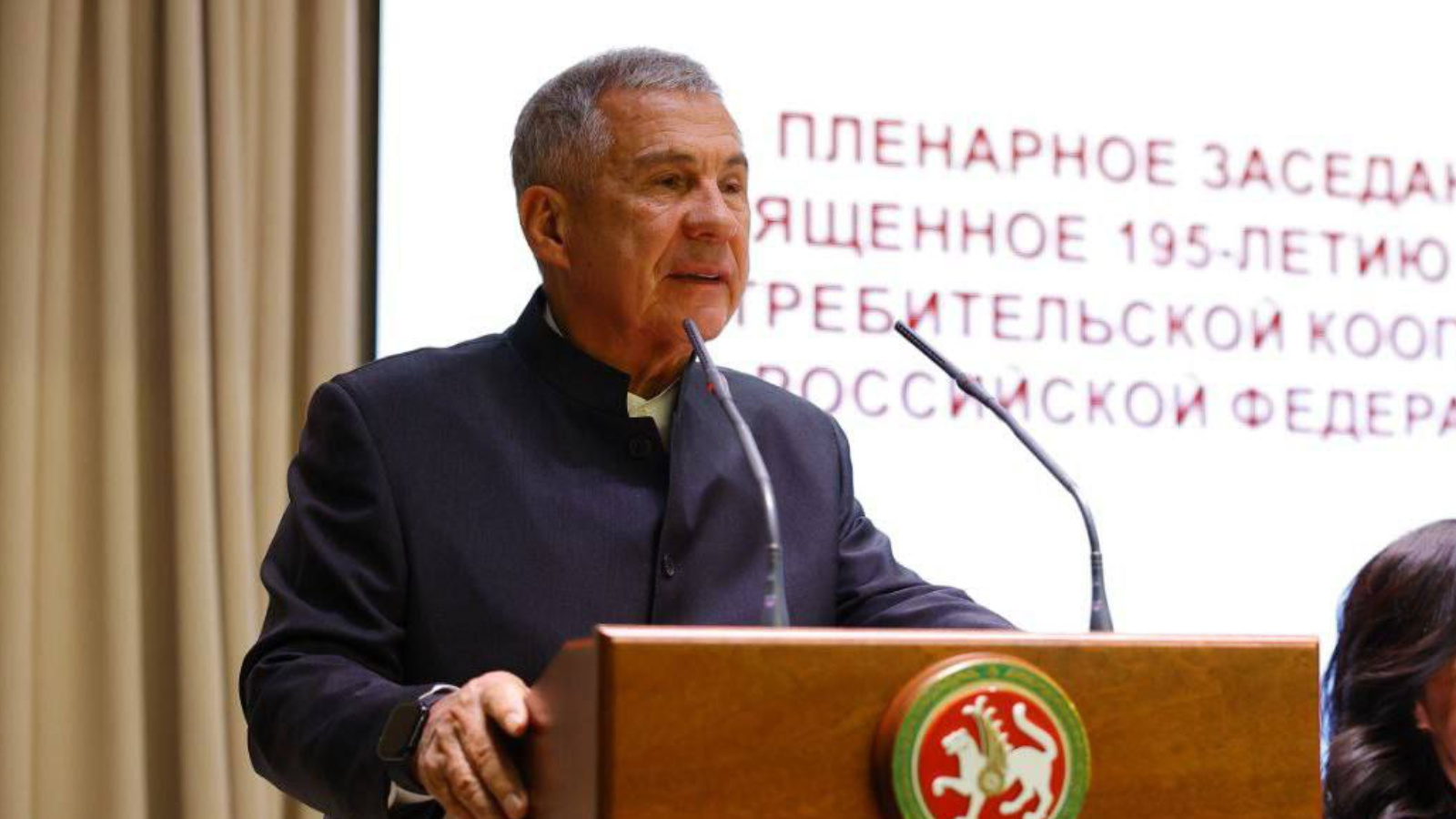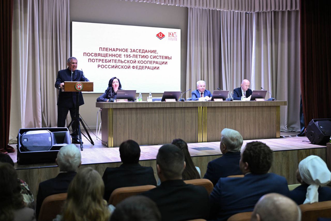 Раис Рустам Минниханов и председатель Совета Центросоюза РФ Дмитрий Зубов приняли участие в пленарном заседании, посвященном 195-летию системы потребительской кооперации России.
